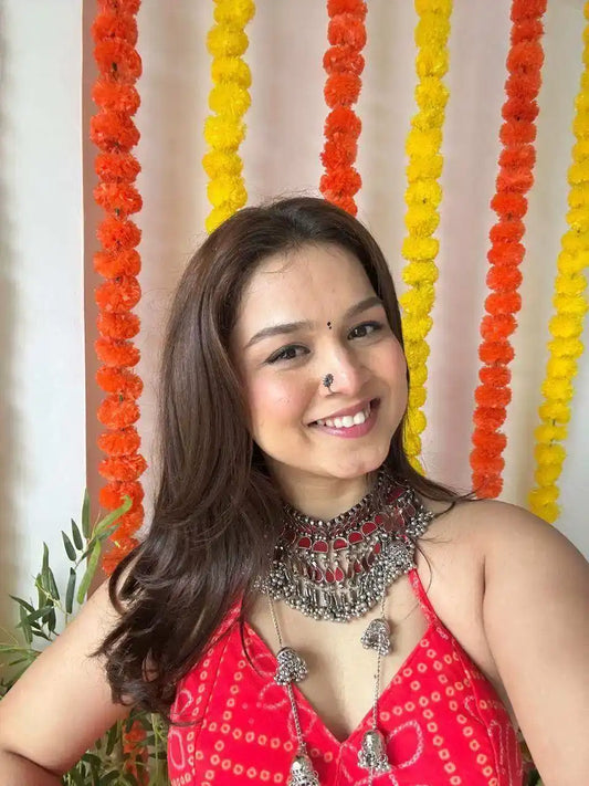 Ayesha’s Red Bandhej Peplum Top