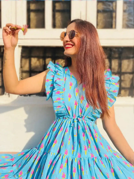 Asure Blue Blockprint Twirl Dress