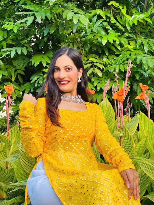 Amber Yellow Mirror Gulnaz Kurta