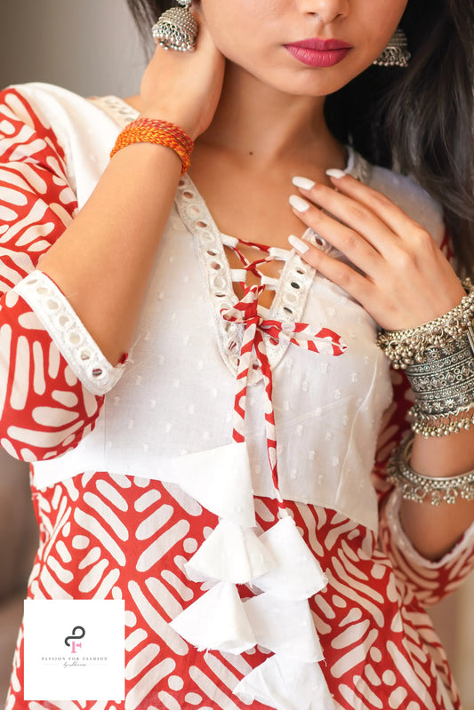 Cherry Red Gulnaz Slit Kurta