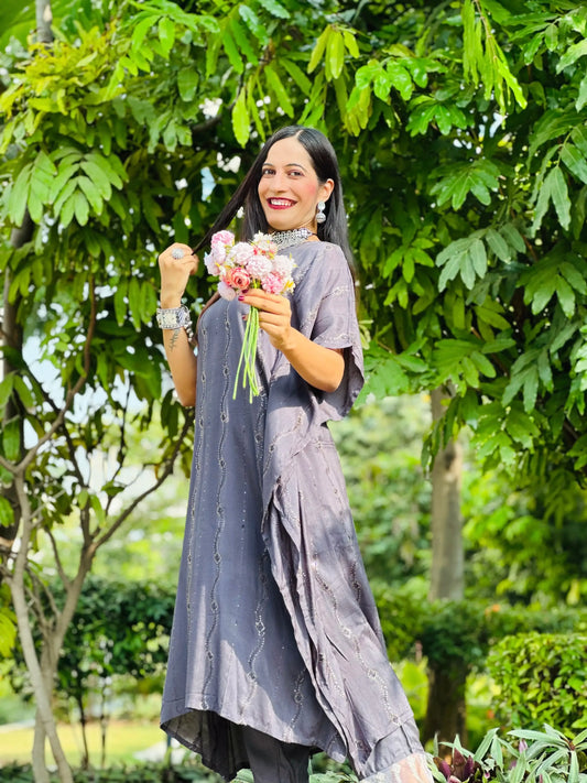 Chloe Chic Grey Muslin Kaftan Set