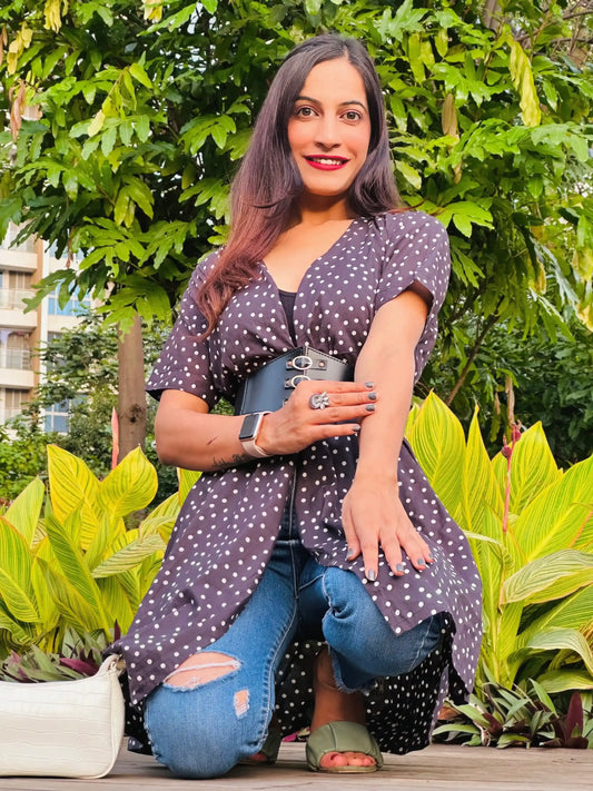 Charcoal Grey Polka Wrap Dress