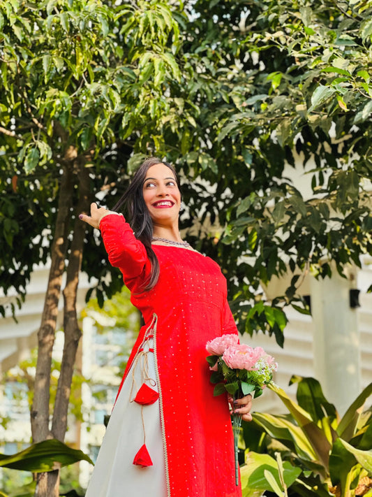 Hot Red Sequence Embroidered Gulnaz Kurta