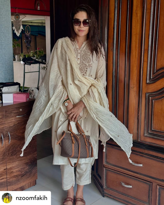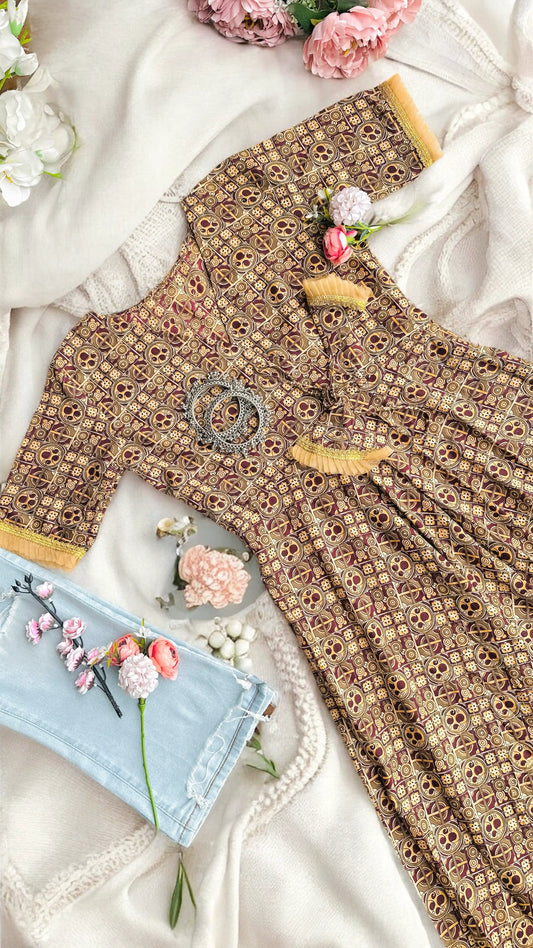 Jaipuri Handprinted Brown Gulnaz Twirl Anarkali