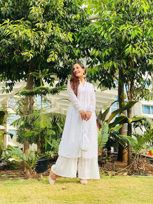 Liberty White Nyra Gulnaz Embroidered Kurta