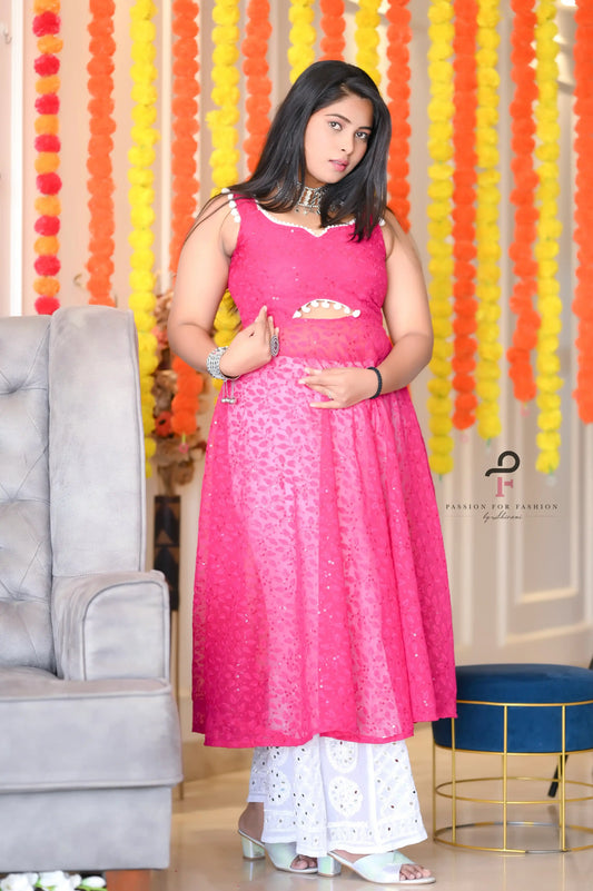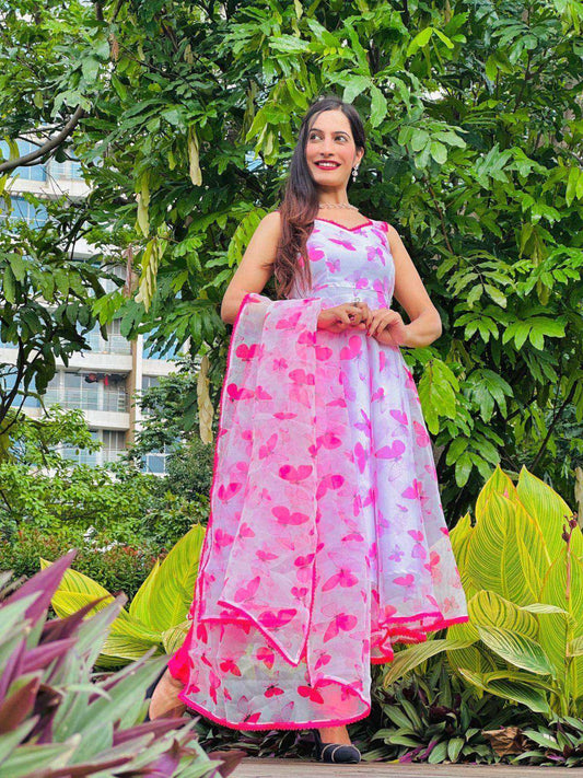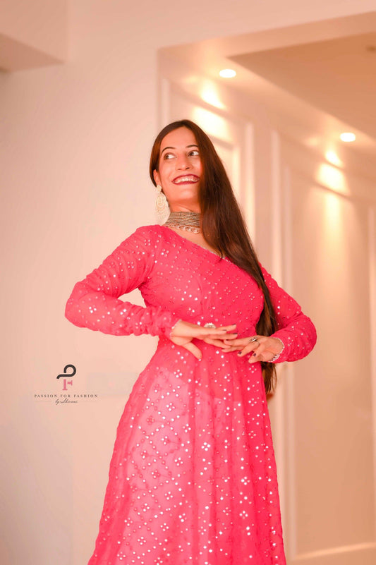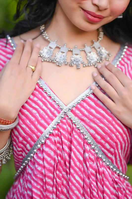Rosebloom Pink Lehriya Gulnaz Anarkali