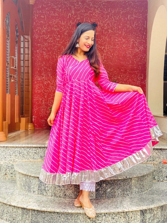 Blush Pink Lehriya Twirl Gulnaz Anarkali
