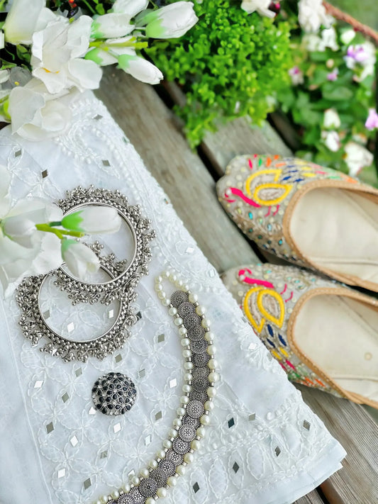 Snowy White Sequence Gulnaz Kurta