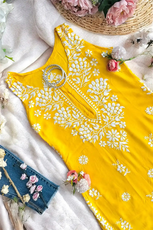 Mustard Hoor Chikankari Slit Kurta