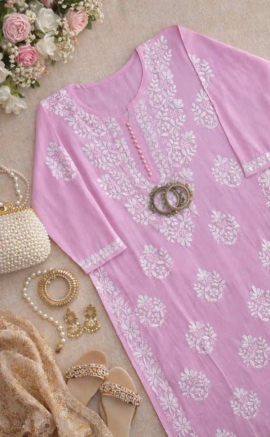 Blush Lilac Aliya Chikan Kurta