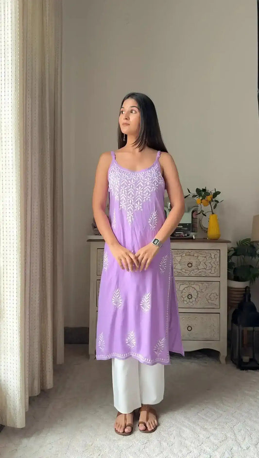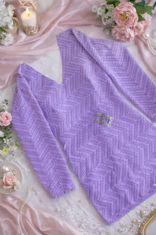 Pastel Lilac Gulzar Chikan Kurta