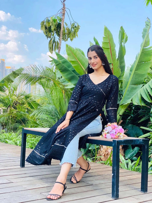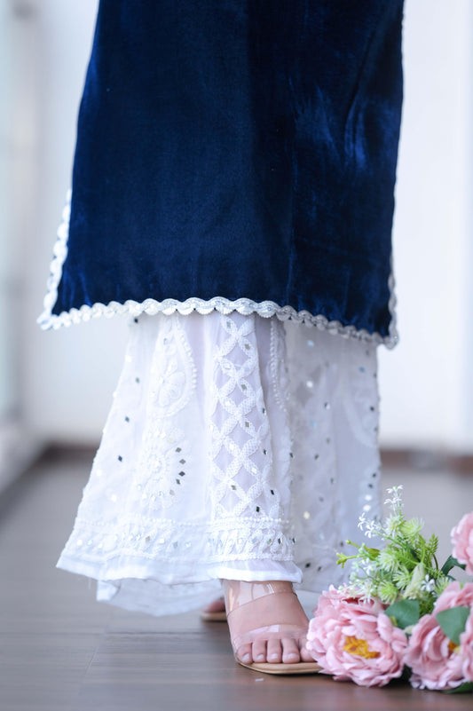 Monochrome Blue Gamti Embroidered Gulnaz Kurta