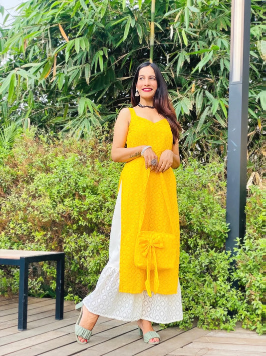 Vibrant Yellow Gulnaz Embroidered Kurta