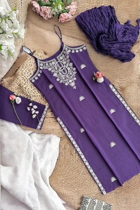 Elegant Purple Embroidered Kurta Set