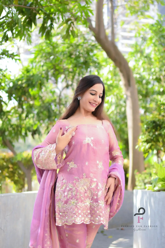 Pastel Lilac Embroidered Suit Set