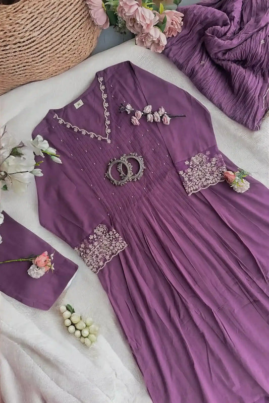 Embroidered Purple Suit Set