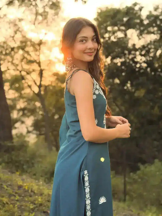 Sold outDeep Teal Embroidered Meher Suit