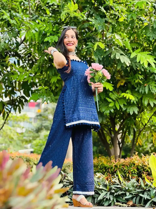 Pastel Aqua Blossom Kurta Set