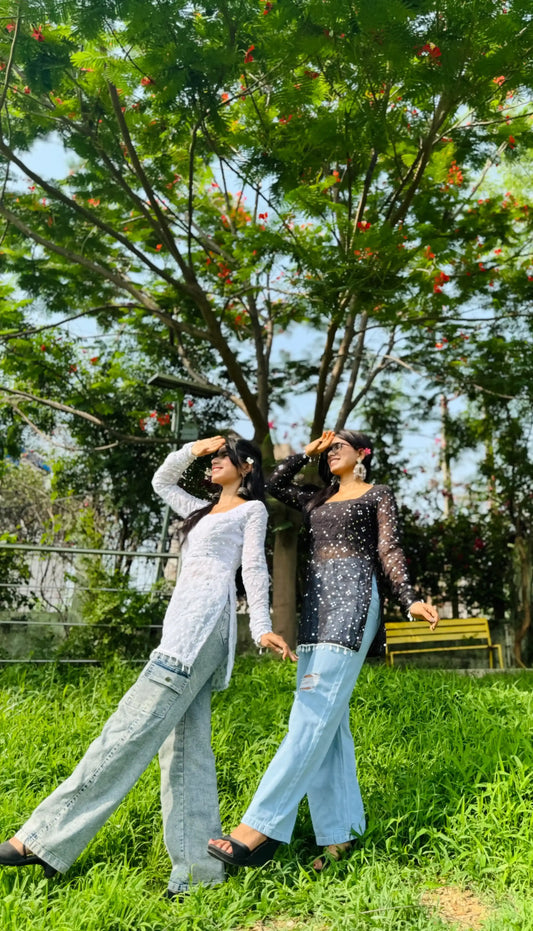 Snowy White Sequence Gulnaz Kurta