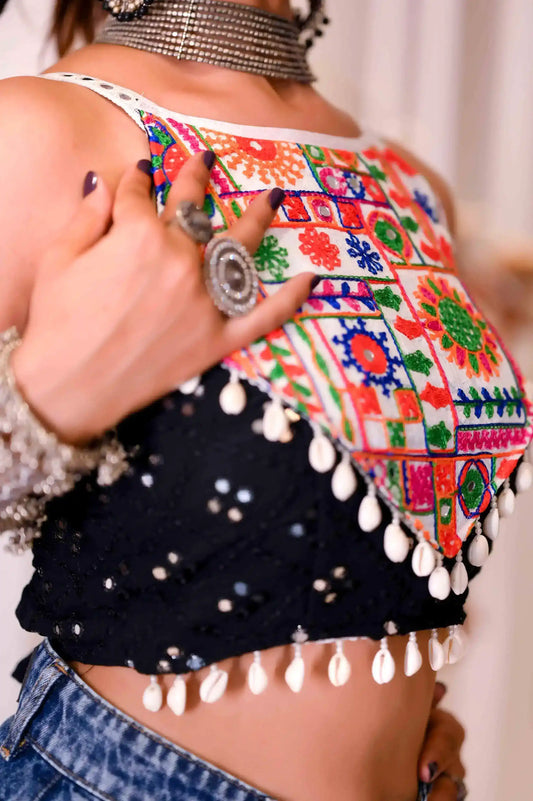 Gamti Black Embroidered Bralette Top
