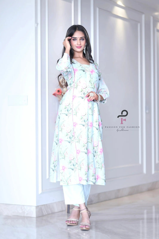 Sold outBlush Blue Floral Meher Suit Set