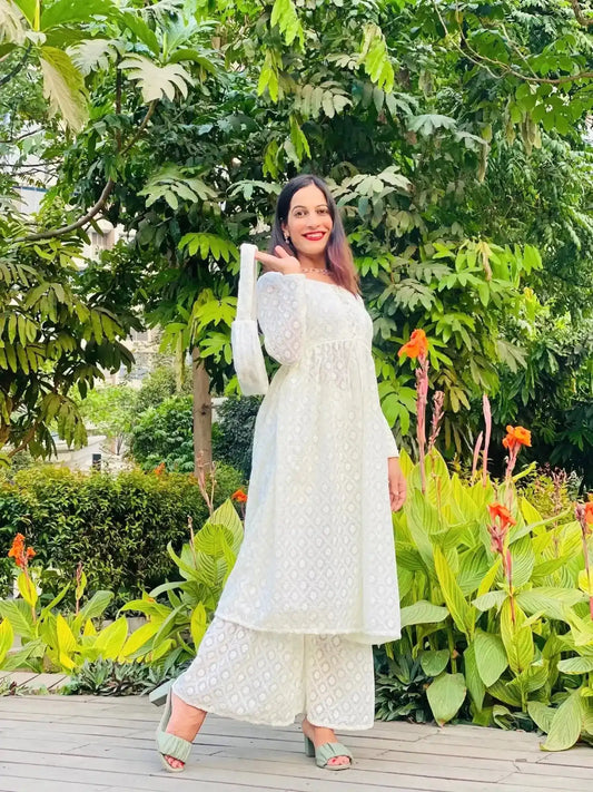 Whimsical Cream Angrakha Gulnaz Kurta Set