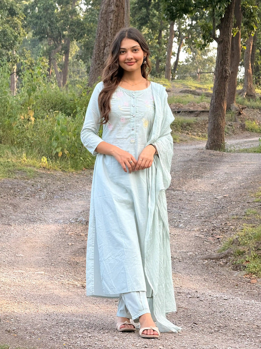 Pastel Aqua Blossom Kurta Set
