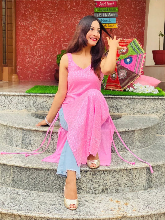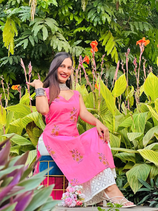 The Pink Block Print Rangriti Budget Kurta
