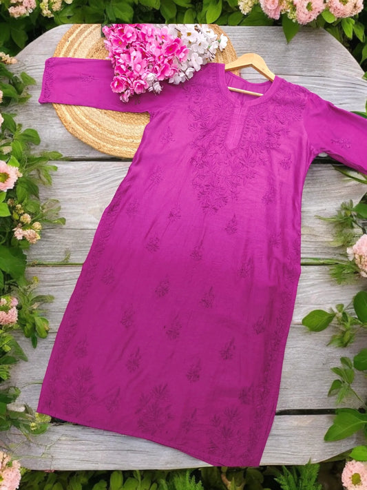 Crimson Red Naaz Chikan Short Kurta