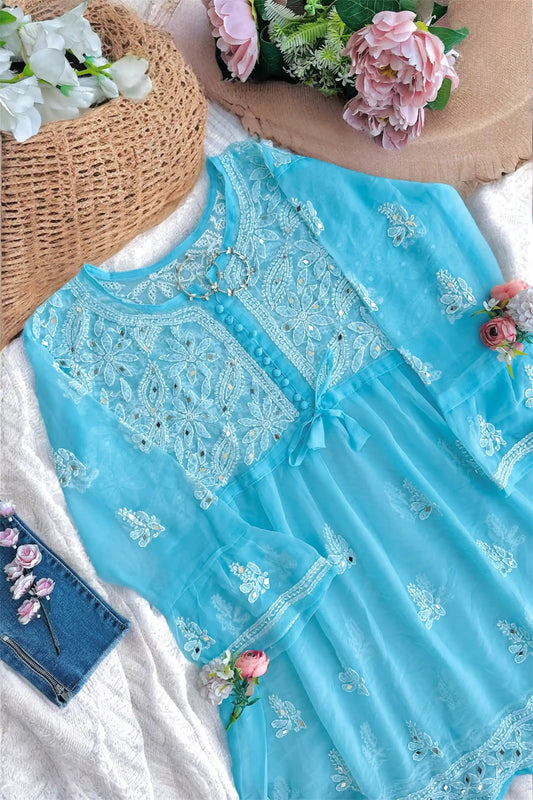 Blush Blue Noor Mirror Chikankari