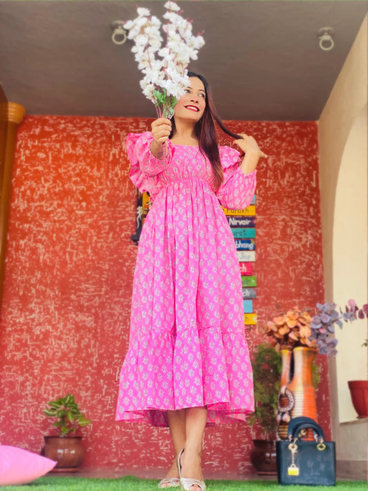 Sold outRuffle Pink Mulmul Twirl Dress