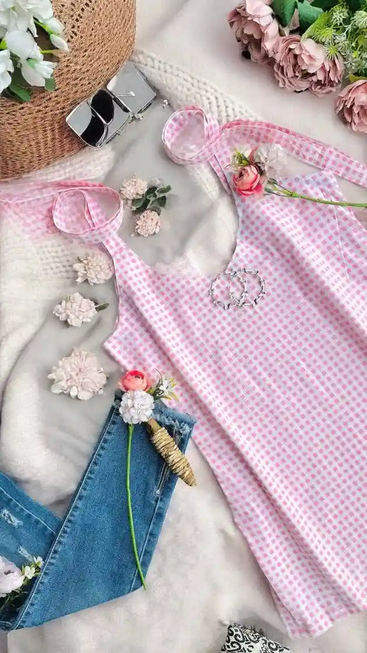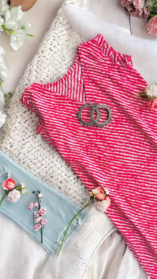 Pretty Pink Block Mul Kurta