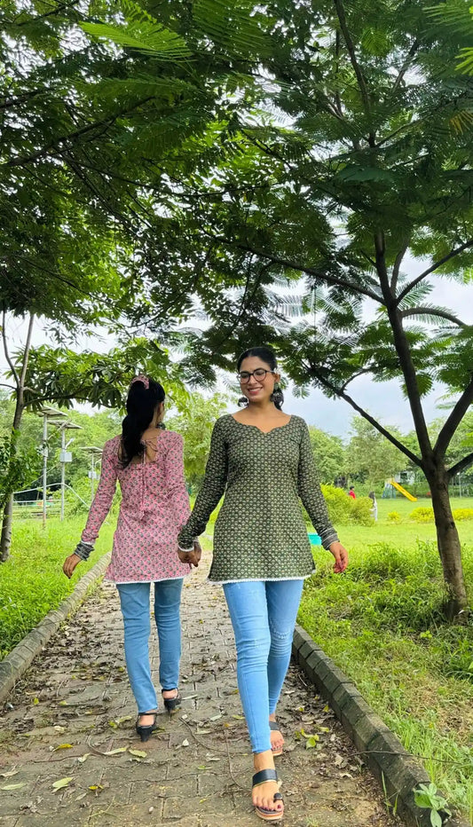 Gulmohar Green Handblock Kurti