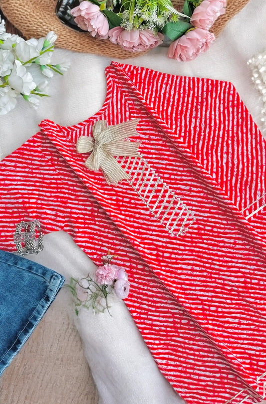 Red Lehriya Jaipuri Short Kurta