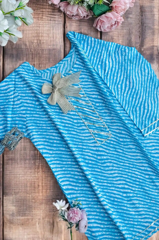 Blush Blue Lehriya Jaipuri Short Kurta