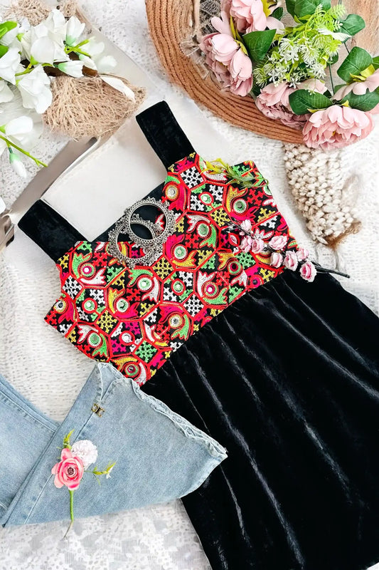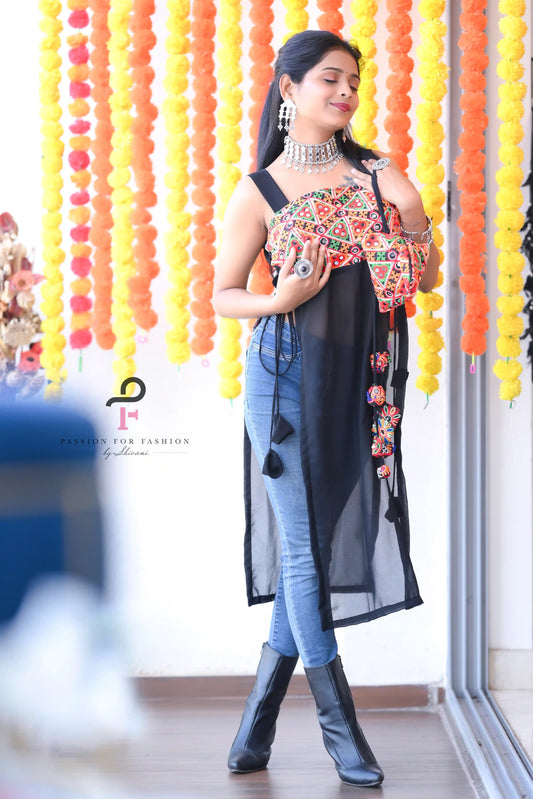 Black Gamti Embroidered Denim Fit