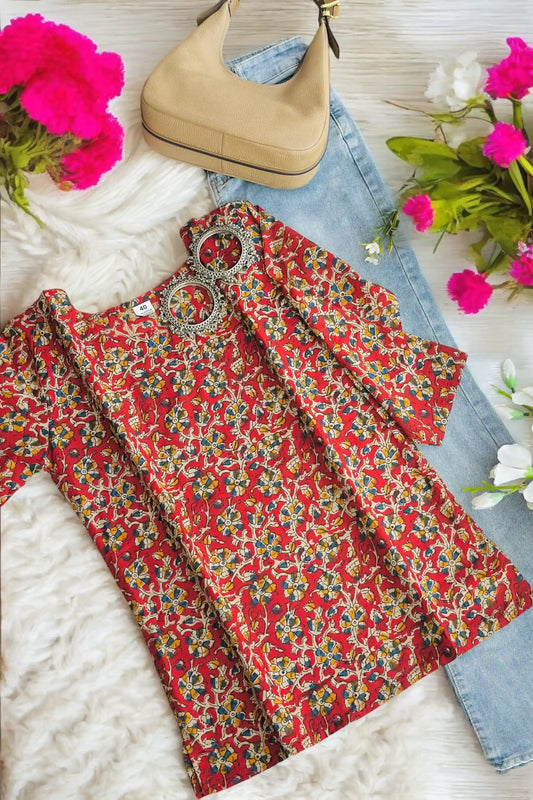Classic Maroon Kalamkari Short Kurta