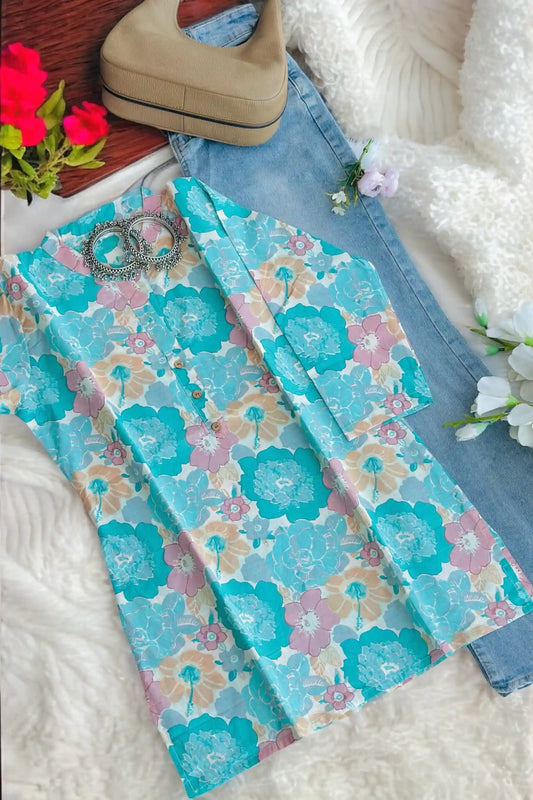 Classic Mul Floral Short Kurta