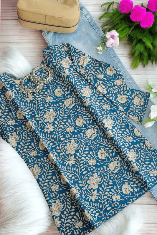 Classic Blue Kalamkari Short Kurta