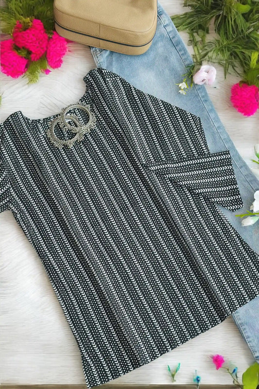 Classic Black Stripe Short Kurta