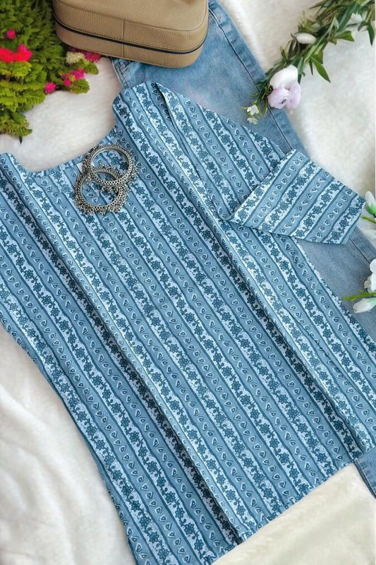 Classic Grey Stripe Short Kurta