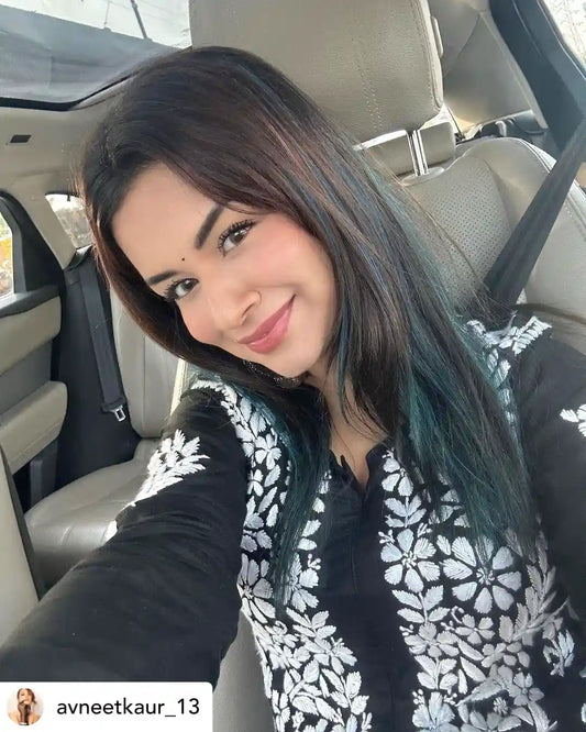 Avneet Inspired Black Gulzar Chikan Kurta