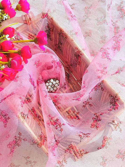 Sold outDaisy Peach Organza Fabric Cut