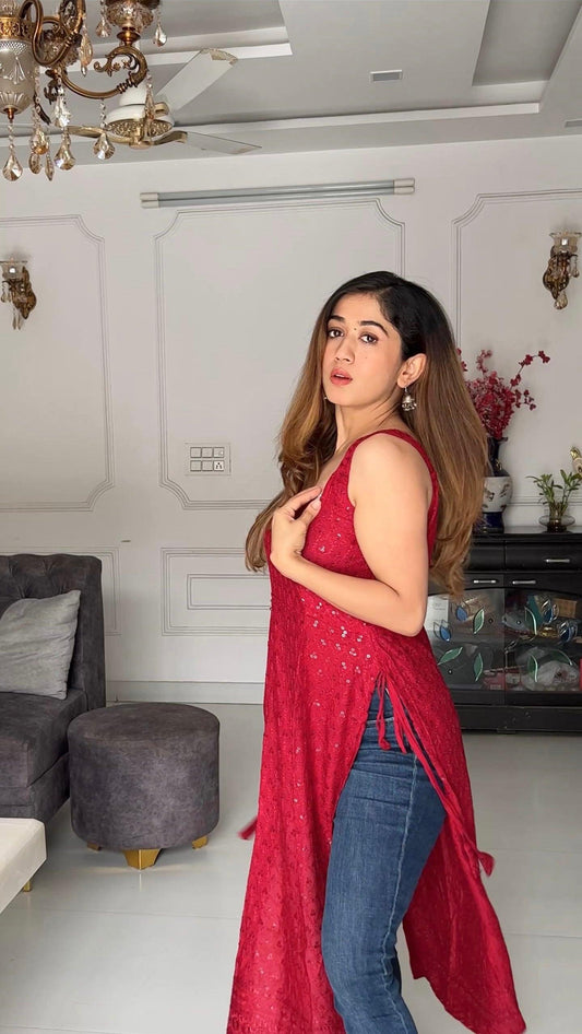 Swati's Scarlet Maroon Sequence Gulnaz Kurta