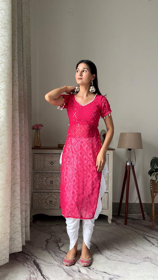 Swati's Hot Pink Embroidered Denim Gulnaz Kurta