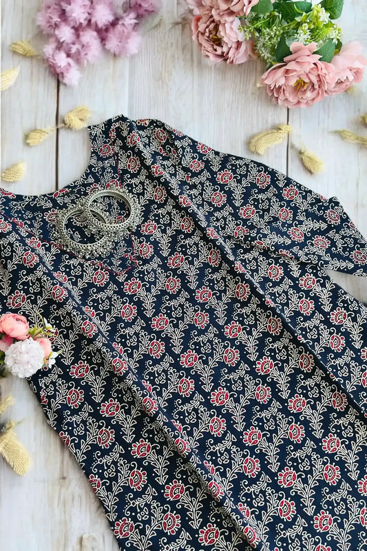 Midnight Bloom Block Jaipuri Kurta