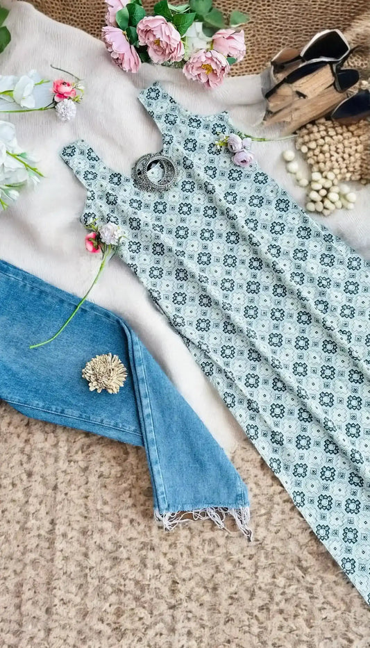Green Floral Mul Budget Kurta