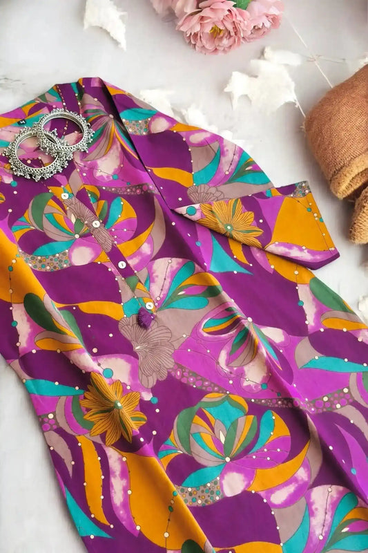 Floral Purple Mul Budget Kurta
