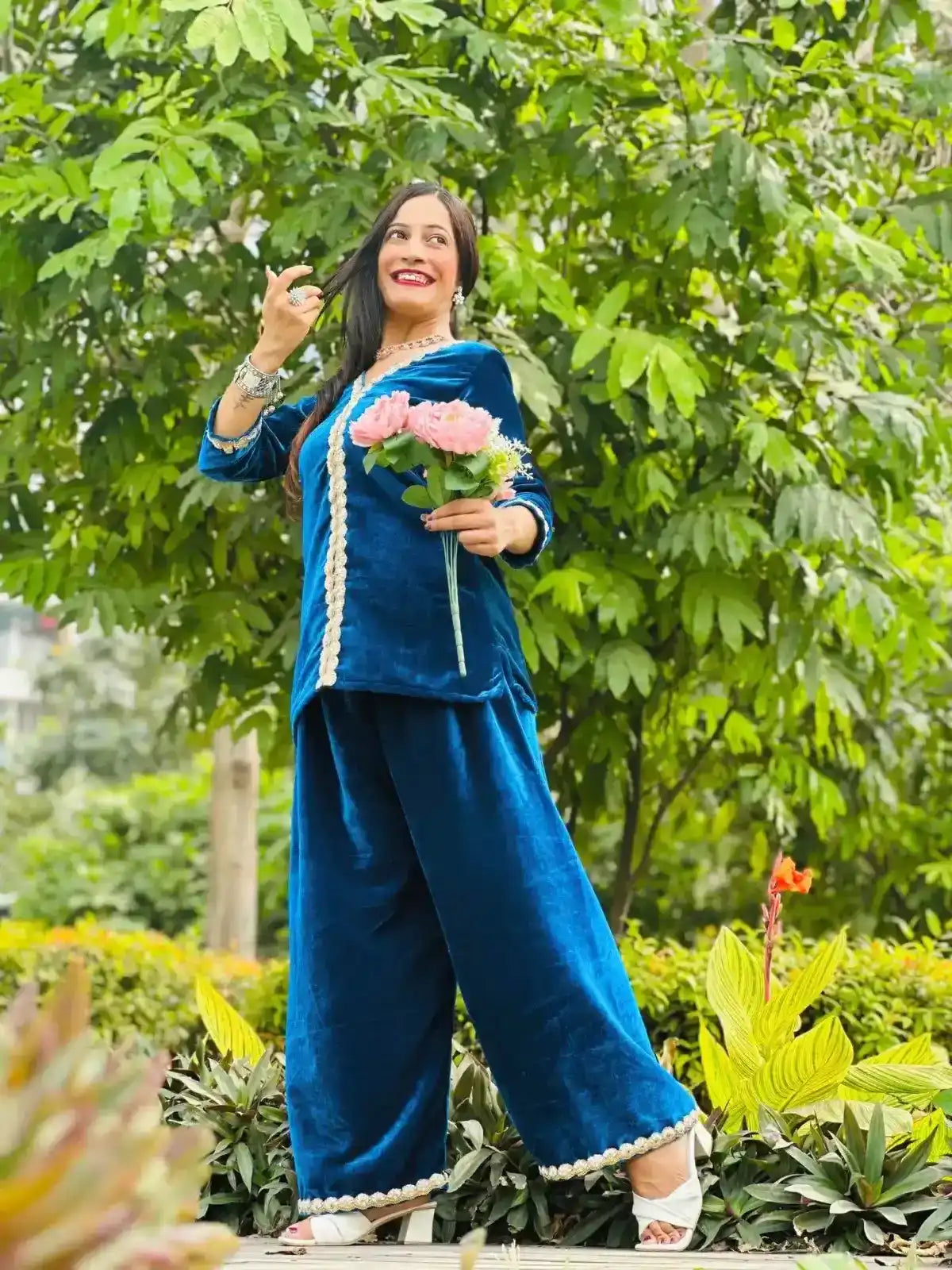 Azure Blue Velvet Gulnaz Cord Ensemble