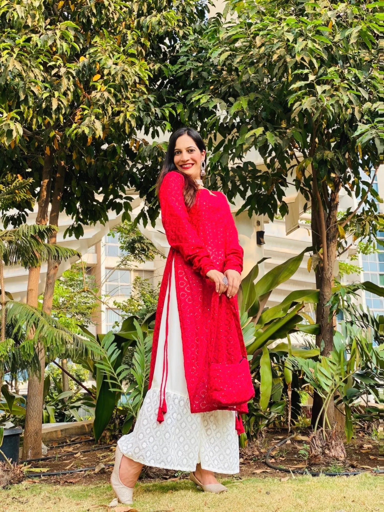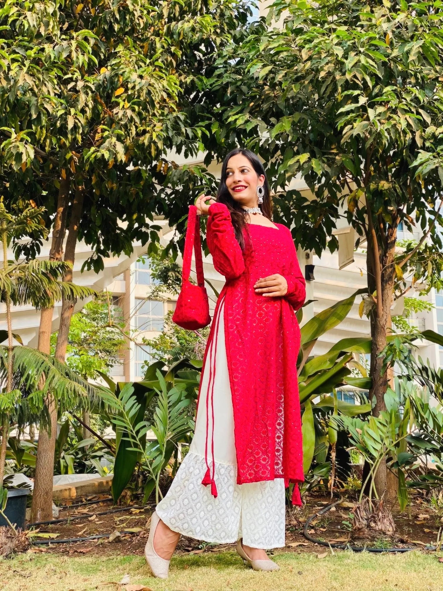 Scarlet Red Noor Chikan Cord Set